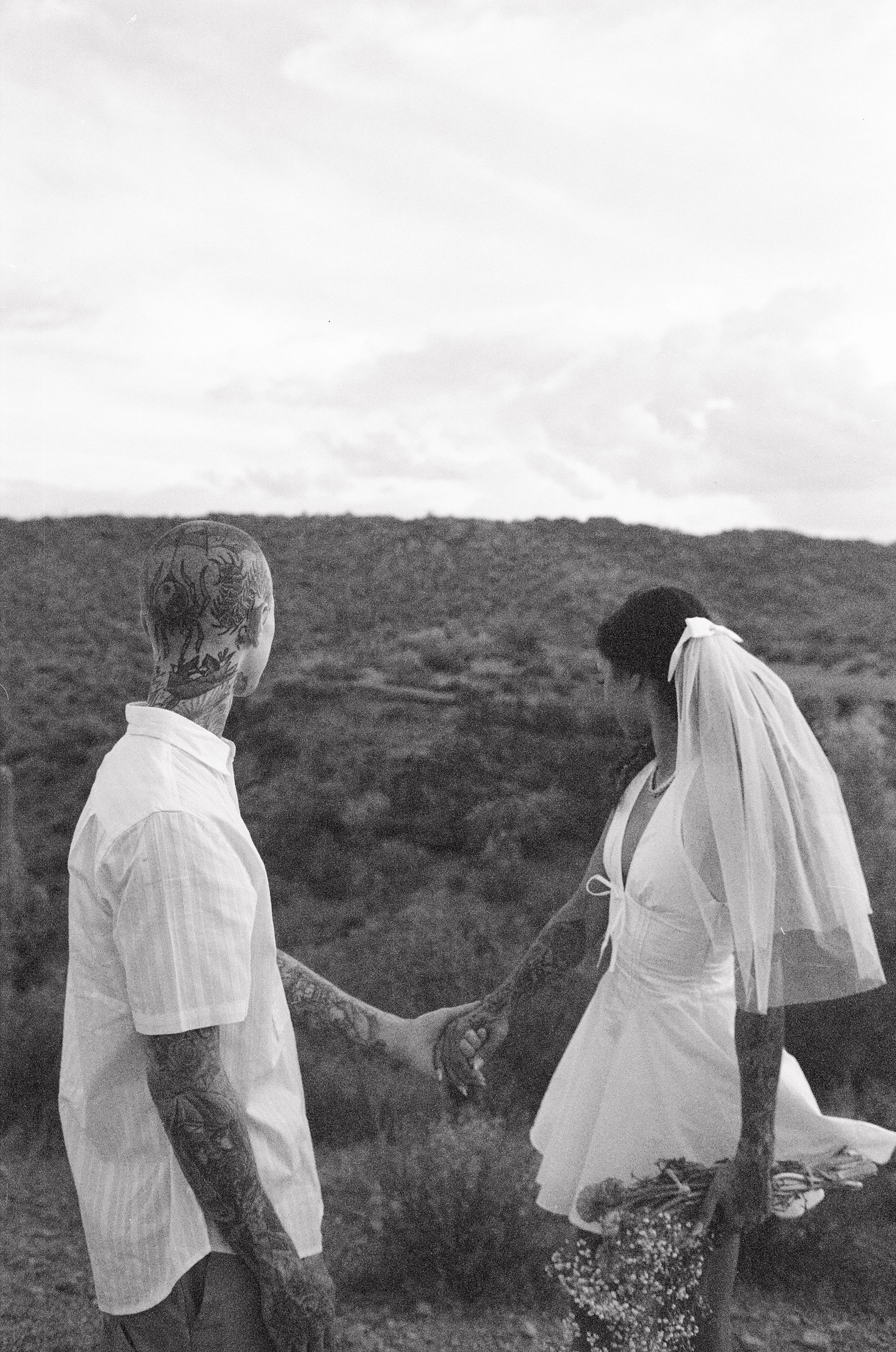 This session was shot on three distinct film stocks, each bringing a different look to the final images. Fuji 400 gave the photos a clean, balanced color palette, Portra 400 added soft skin tones and a classic portrait feel, and the expired Kodak black-and-white C-41 film brought a more unpredictable, moody character with grainy shadows but still beautiful in it's own way.