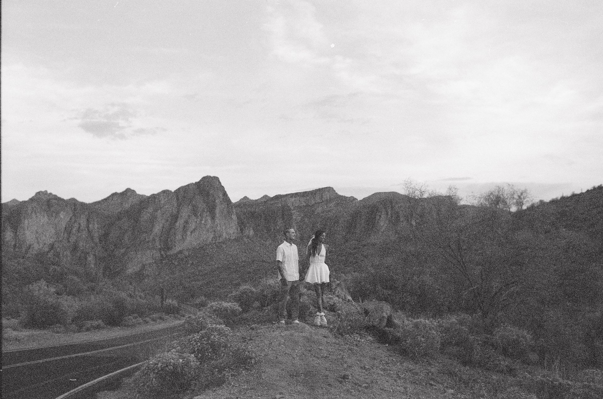 If you are searching for a Phoenix film photographer or an Arizona engagement photographer, this Tonto National Forest session is a great example of how 35mm film can elevate a desert portrait session. The combination of natural light, open landscape, and soft film grain creates a timeless look that feels perfect for both engagement photos and family photography in the greater Phoenix area.